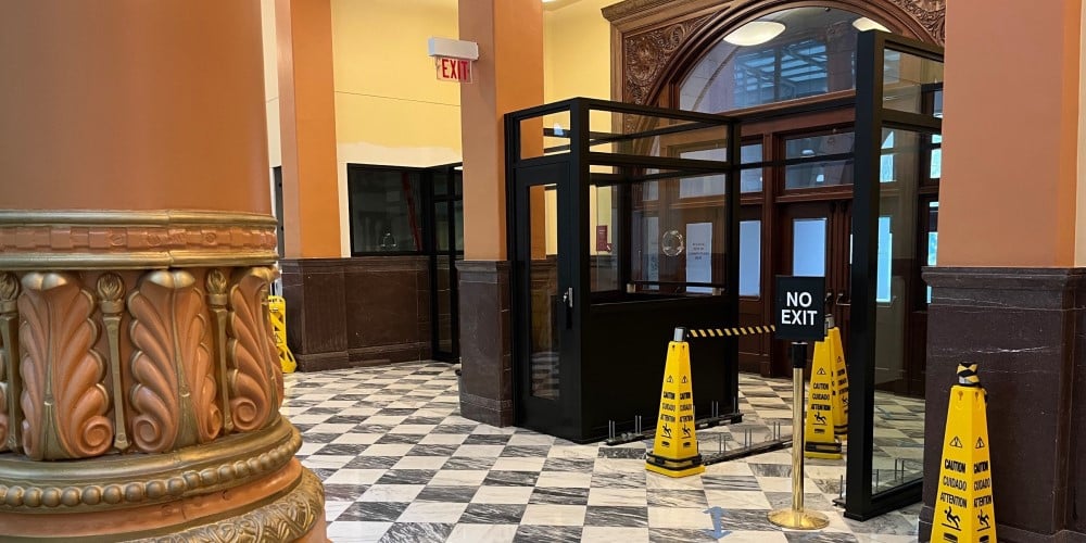 An example of preserving the historic nature of a building while implementing ballistic solutions that offer a first line of defense and ensure only authorized individuals move through the building