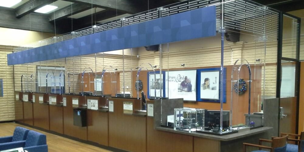 In most banks, you’ll typically find a UL level 1-3 system, depending on the customer. While a level 2 is fairly common with some corporate banks, a UL level 1 is often more than sufficient, and you’ll generally find these in new banks and credit unions. The type of material you’d use would be a level one uncoated, as acrylic holds up quite well over time, doesn’t discolor, and is the most affordable option out there.