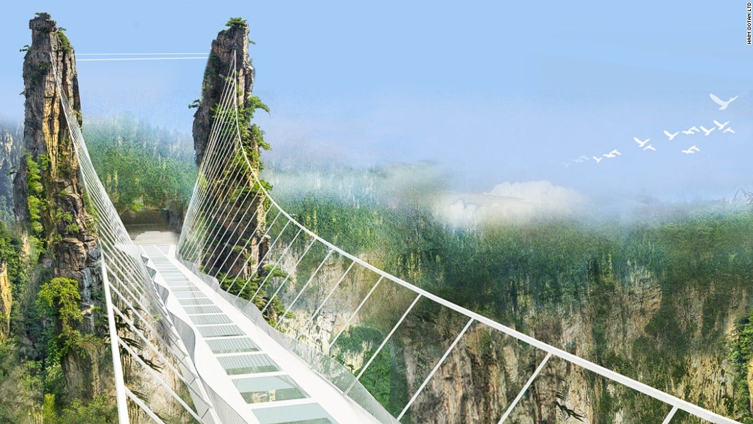 While Zhangjiajie National Forest Park already offers one glass-bottom exhibit with its “Walk of Faith,” a nearly 200-foot section of the cliff-hanging walkway that scales the side of Tianmen Mountain more than 4600 feet in the air, a second vertigo-inducing attraction is set to open in this same region. When this quarter mile long glass skywalk over the Zhangjiajie Grand Canyon opens in July 2016, it will earn China the record for both longest and highest glass-bottom bridge.