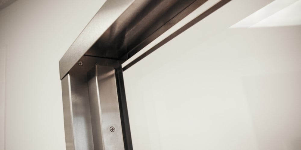 Working in stainless steel poses a unique set of challenges. In contrast to mild or cold-rolled steel, stainless steel is thicker and heavier. It is also more sensitive to temperature and metallurgy during welding, fabrication, and even installation. For example, a stainless steel door could in theory use a standard steel or rated aluminum frame. But under certain conditions having those different metals in long-term contact with each other can cause a reaction, accelerating oxidation.