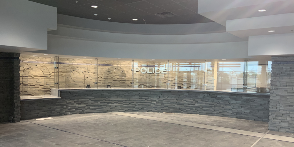 This teller line was part of a significant renovation for a new law enforcement center in Texas. Architectural choices—like stone finish on the walls—reduced the need for ballistic fiberglass reinforcement in the walls.