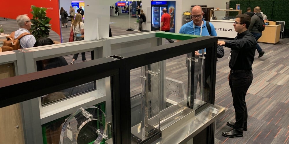 This all-in-one display allows our team to demonstrate just about every TSS offering you could ask for: transaction windows and accessories, fiberglass and custom finishes, doors, and more. It’s not often that architects and designers get to see the ballistic products they design with. Giving them real-life examples and resources is a huge step for advancing safety and security in building design. The display was a huge hit and we were proud to offer attendees a hands-on experience with high quality ballistic materials.