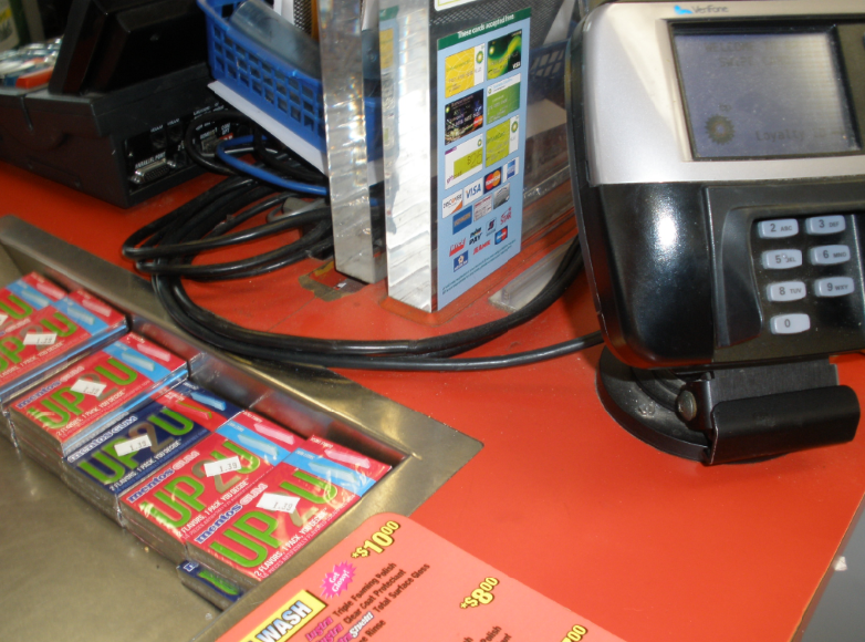 This photo is just one example of a mistake that could have been easily prevented. The Bullet Resistant Horizontal Slider, commonly used in convenience store installations, cannot be quickly closed in the event of an emergency because the cords for the credit card machine are draped across the threshold. There are a couple different solutions to remedy this situation including a grommet in the countertop or drilling a hole in the sidewall of the cash tray for the cords to route through. The cords could even be routed directly through the bulletproof glass without compromising the structural integrity of the barrier.