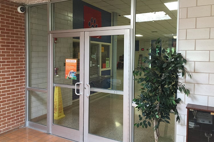 This door system is a good example of what a modern ballistic security door for a school should look like. On the surface, they are indistinguishable from the front doors of any school in the nation. But these doors are extremely durable, well-armored against forced entry, and include integrated access control and electric panic bars.