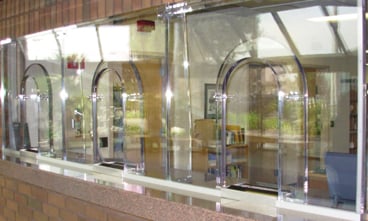 - “Fixed opening” or “large area”? A “fixed opening” refers to any opening smaller than a standard home window—for example, the check-in window at a doctor’s office or pharmacy is a “fixed opening.” A “large area” includes anything from the long counters at a county clerk’s office to an open lobby. Fixed openings can usually be secured with a prefabricated transaction window, while large areas call for a custom solution.