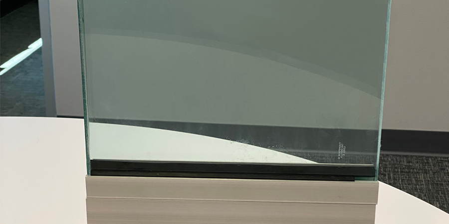 One of the biggest challenges we faced was that our low spall glass has a thicker profile and would not fit properly in the existing Level 5 door framing system. No spall glass has a mar-resistant layer to stop spall, with a thinner overall size. Low spall, on the other hand, has no mar-resistant layer, is thicker, and is more typical for storefronts.