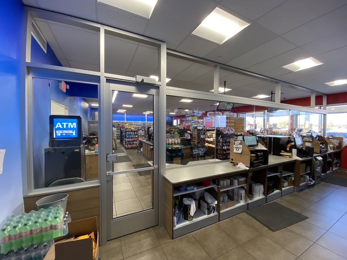 However, many convenient stores benefit from adding bullet-resistant glazing from the counter to the ceiling, creating a safe space for employees behind cash registers. These typically include transaction windows and a secure door for employees to enter and exit.